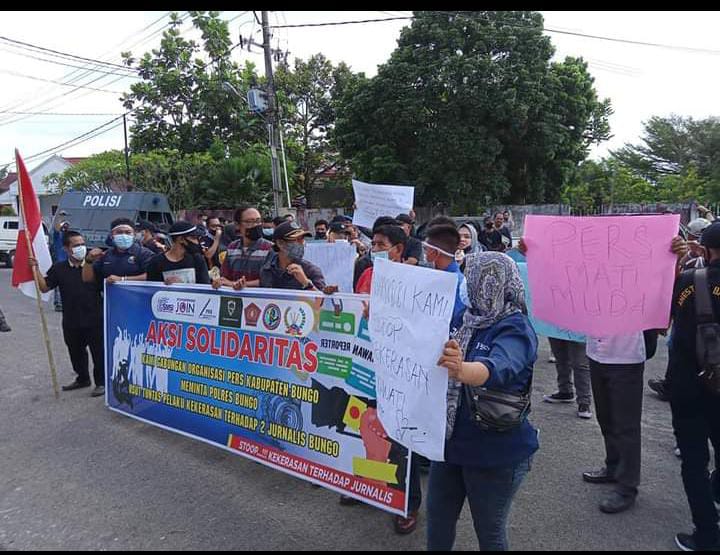 BUNGO- Aksi solidaritas, Gabungan Organisasi Pers yang ada di Kabupaten Bungo, terdiri dari