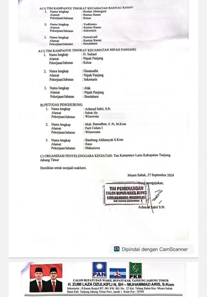 Sempat Viral LARIS Libatkan Asn,Sk Tim Pemenangan Langsung Di Ubah Hari Ini Di Kpu Tanjab Timur