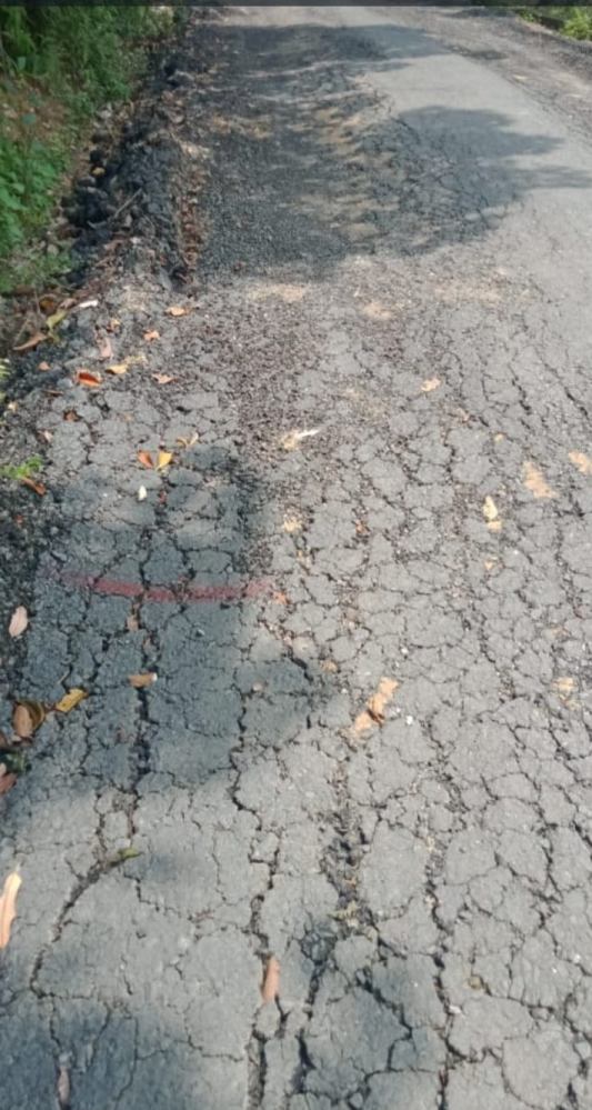 Sementara umur aspal jalan boleh di bilang masih Seumur jagung namun aspal telah rusak, Kerusakan terjadi di duga kontruksi meterial agregat dasar badan tidak standar dan di duga asal Jadi, sehingga ketika di lewat oleh kendaraan badan jalan jadi bergerak, sehingga membuat aspal Pada badan jalan tersebut menjadi pecah Karena kurang padat nya pondasi sebagai lapisan dasar sehingga aspal menjadi Tidak kuat menahan beban kendaraan yang melintas di atas badan jalan Tersebut.