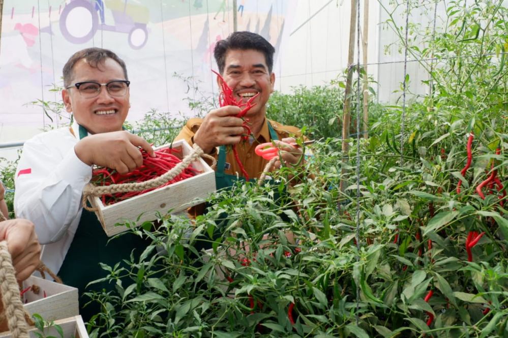 MUARO JAMBI - Penjabat Bupati Muaro Jambi Drs. Raden Najmi lakukan kegiatan panen perdana cabai