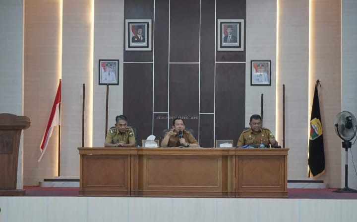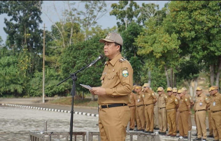 MUARO JAMBI - Usai mengikuti upacara gabungan perdana di lapangan, Bupati Muaro Jambi Bambang Bayu